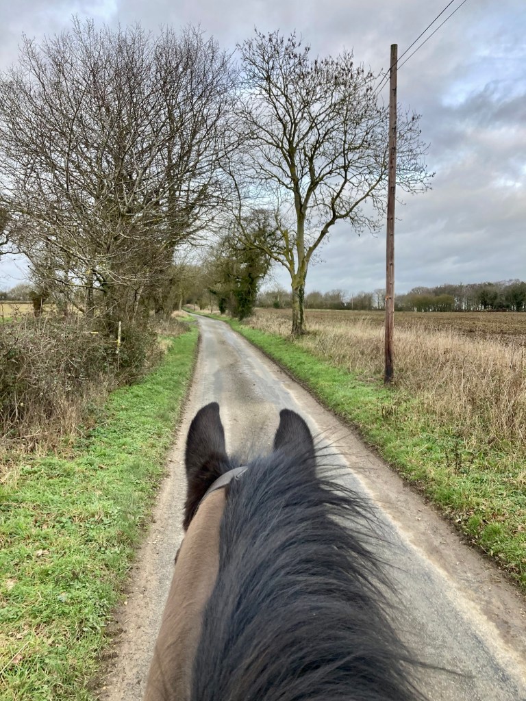 I thought I’d take advantage of the fact it wasn’t raining to take Buddy out for a hack. The sun even made a welcome return earlier too. I actually over-layered, which makes a huge change from being cold!