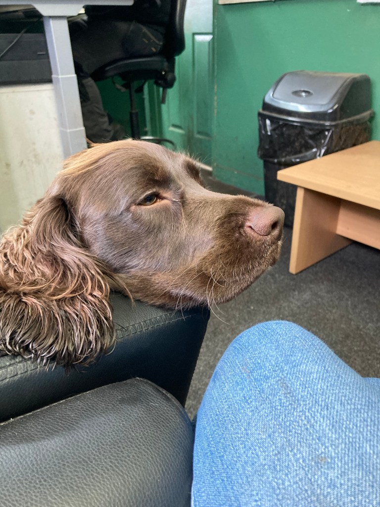 Bert and I went for a long walk this morning. There’s a secure field where he has zoomies. It’s lambing time, so the fields are full of frolicking lambs. Thankfully the only frolicking Bert did was in the secure area round the lodge I’m staying in. He’s having a fun time too.