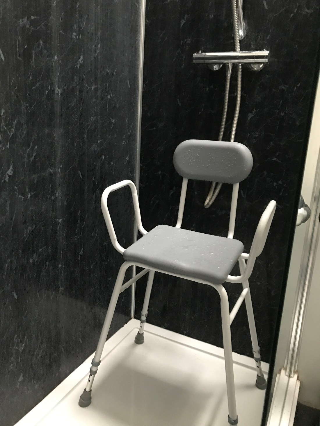 I now have a chair in the shower. It felt a bit odd to start off with, but it definitely helped. I felt so refreshed after the shower (and the sleep).