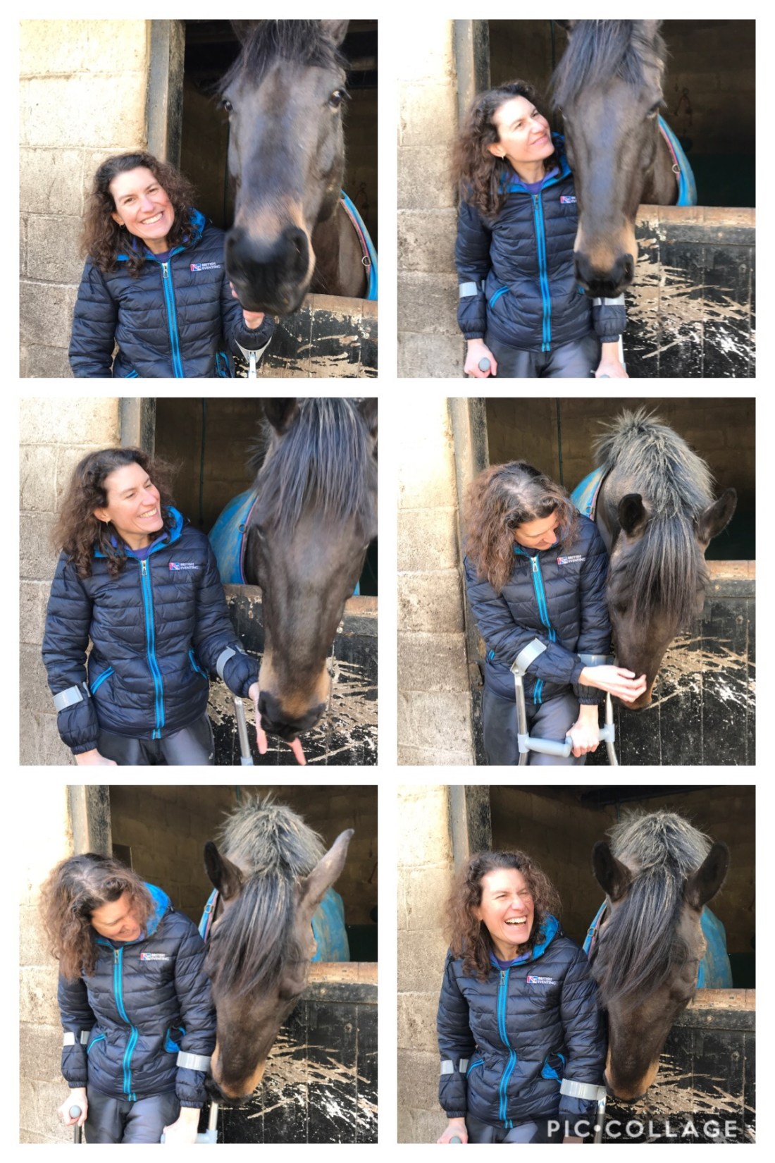 It’s given me such a boost to see him. He stuck his head out as soon as he heard my voice and was licking and chewing. He sniffed me all over, including my cast and then started to groom me. He even tried to eat my crutches. It was so good to see him, give him a cuddle and kiss his nose.