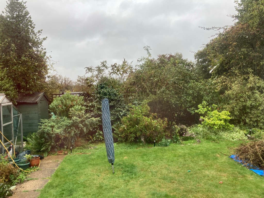 Blimey! That was some storm!! Can’t say I slept very well. Too much crashing and banging. The top of my holly tree has snapped and nearly taken the sail with it. I honestly didn’t think it was going to be that bad. I’d have taken the sail down had I known. I also left one of the seat cushions out. Needless to say that’s a tad soggy.