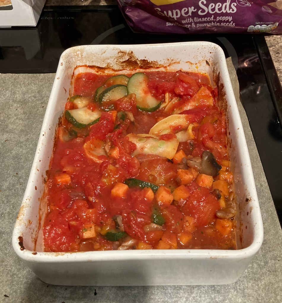 I’ve been struggling with my lack of appetite so trying to find things that I want to eat. Tonight I made a sort of ratatouille. And bloody yummy it was too.
