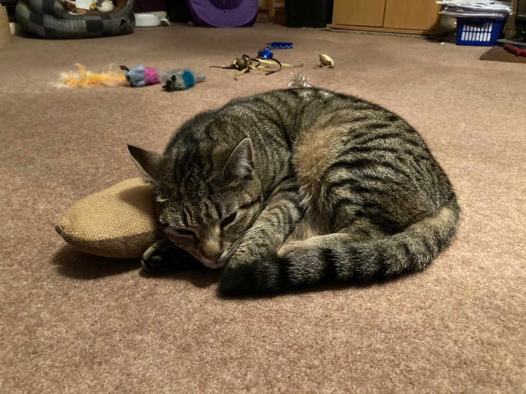 I couldn’t find Dodo today so thought he must have gone out. Given how windy it was, I was a bit surprised. Then I spotted him curled up on his fishing the carpet. I must have walked past him. 🤦🏻‍♀️