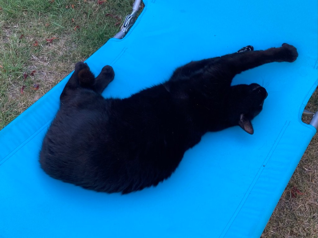Hugo has discovered the joys of the shade lounger. As soon as it was in shade, he staked his claim and isn’t moving.