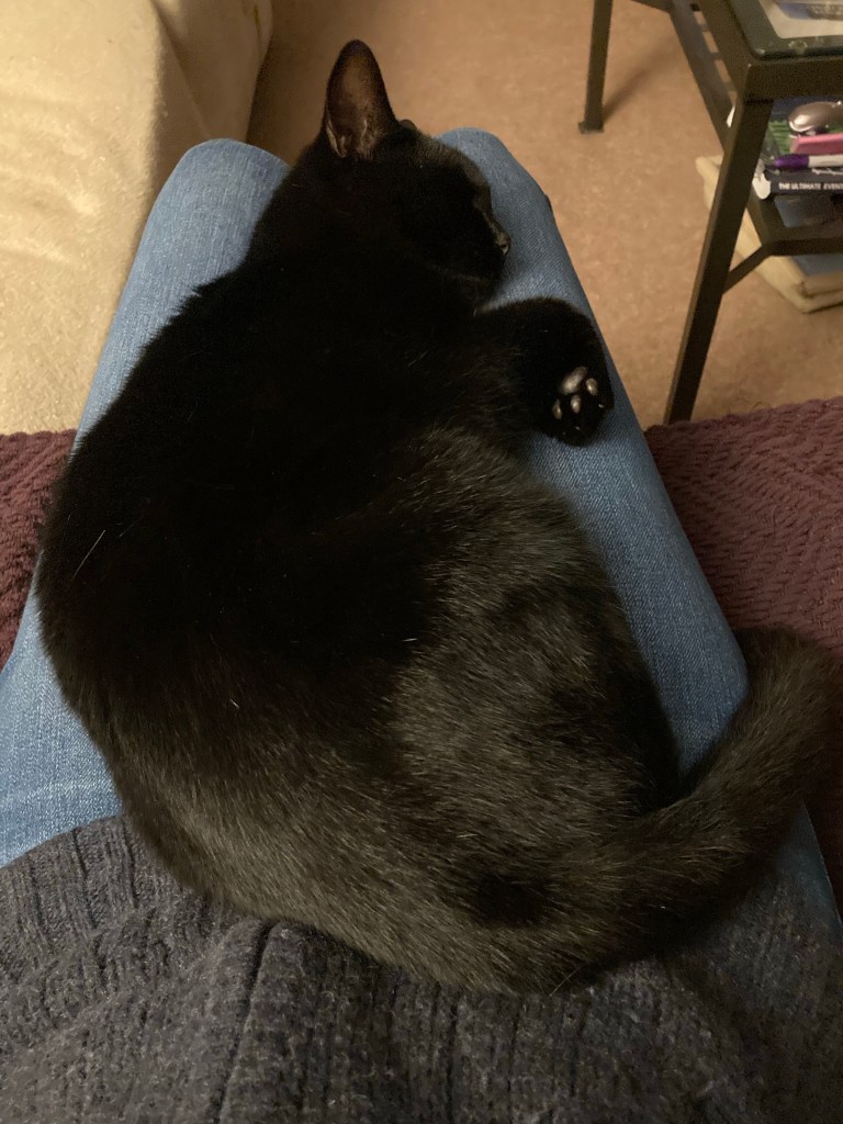 Don’t feel too bad for him, he’s purring loudly next to me as I type. He’s one happy boy.