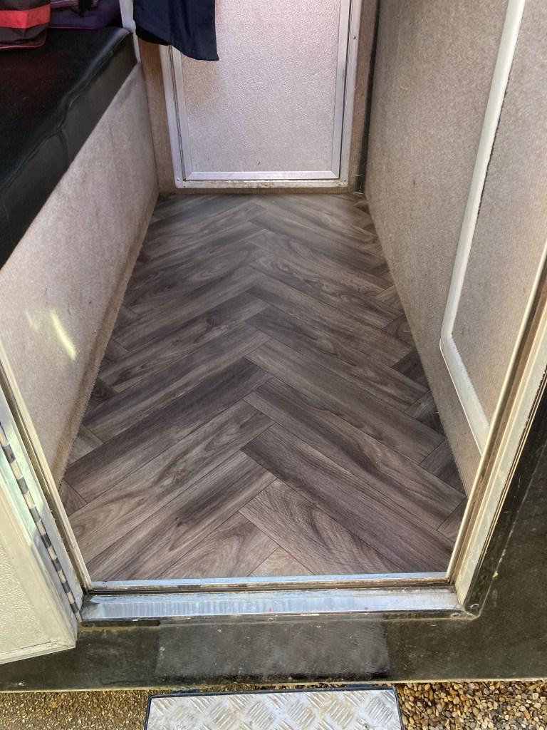 Check out my posh new floor! The Buddymobile has gone up very market. It’s amazing the difference it’s made and it’s just a bit of new lino!