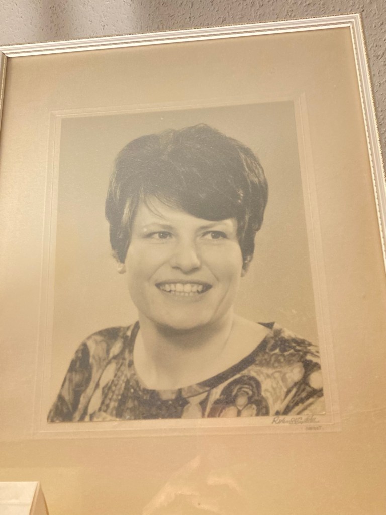 But I was being watched. Literally. This photo of my Mum sits on top of the display cabinet. It was a professional photo she’d had taken when she was 21 and had just had her VERY long hair cut short. It’s always been favourite photo for me. Today it brought me comfort.