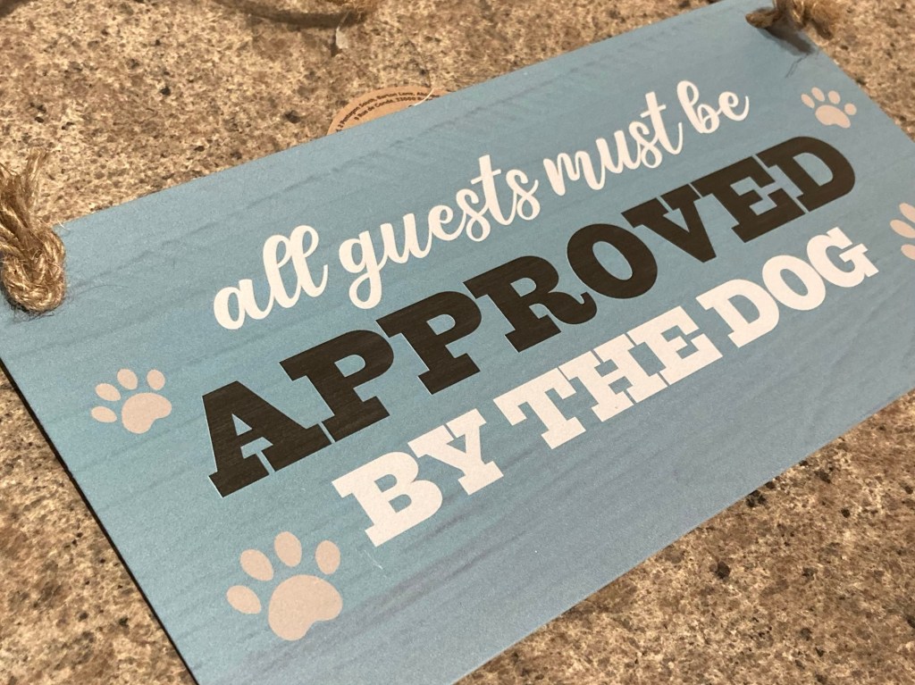 Afterwards, their owner, Jan and I popped to the garden centre while Bert had a nap. She secretly bought this sign for me. I was given a similar one for the cats many years ago. So seems guests will now have to be approved by us all!