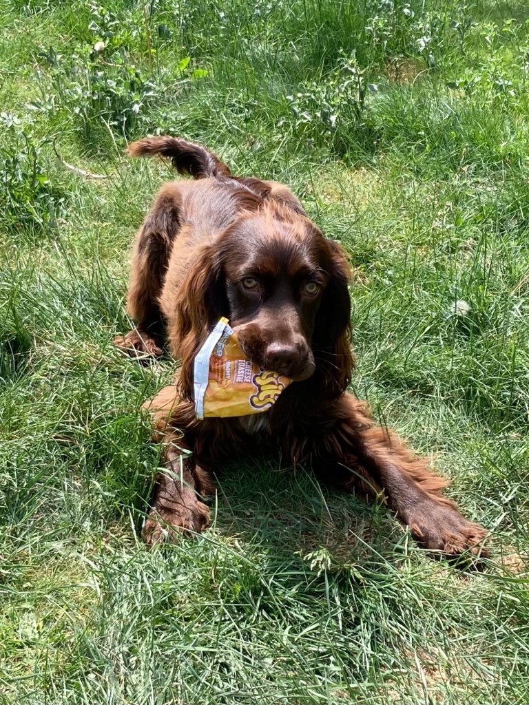 It seems that Bert is a rather big fan of wotsits. He ran around with the empty packet having a blast. He also managed to turn it inside out so he could lick the dust off.