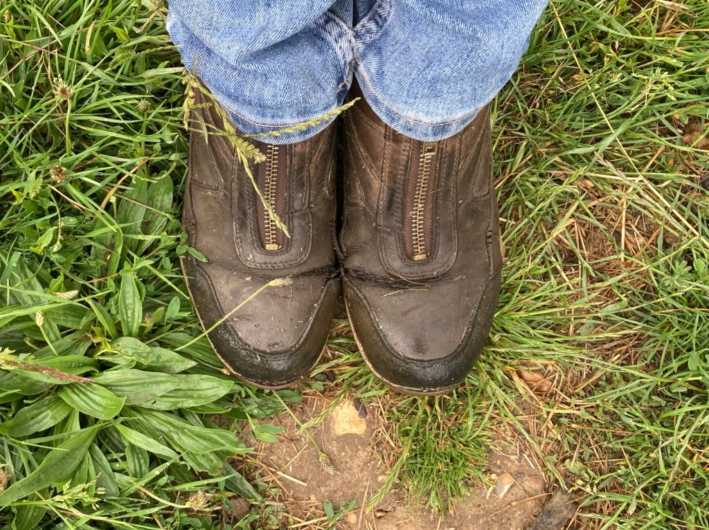 In fact I got rather soggy full stop! I was ill prepared for rain. My beautiful Reincoat is still in my friend’s lorry after Badminton. And the new Ariat muck boot I bought there are still in the box. I got them to replace these ones. They’re still so comfortable and have a lot of wear left in them, I hadn’t swapped over.