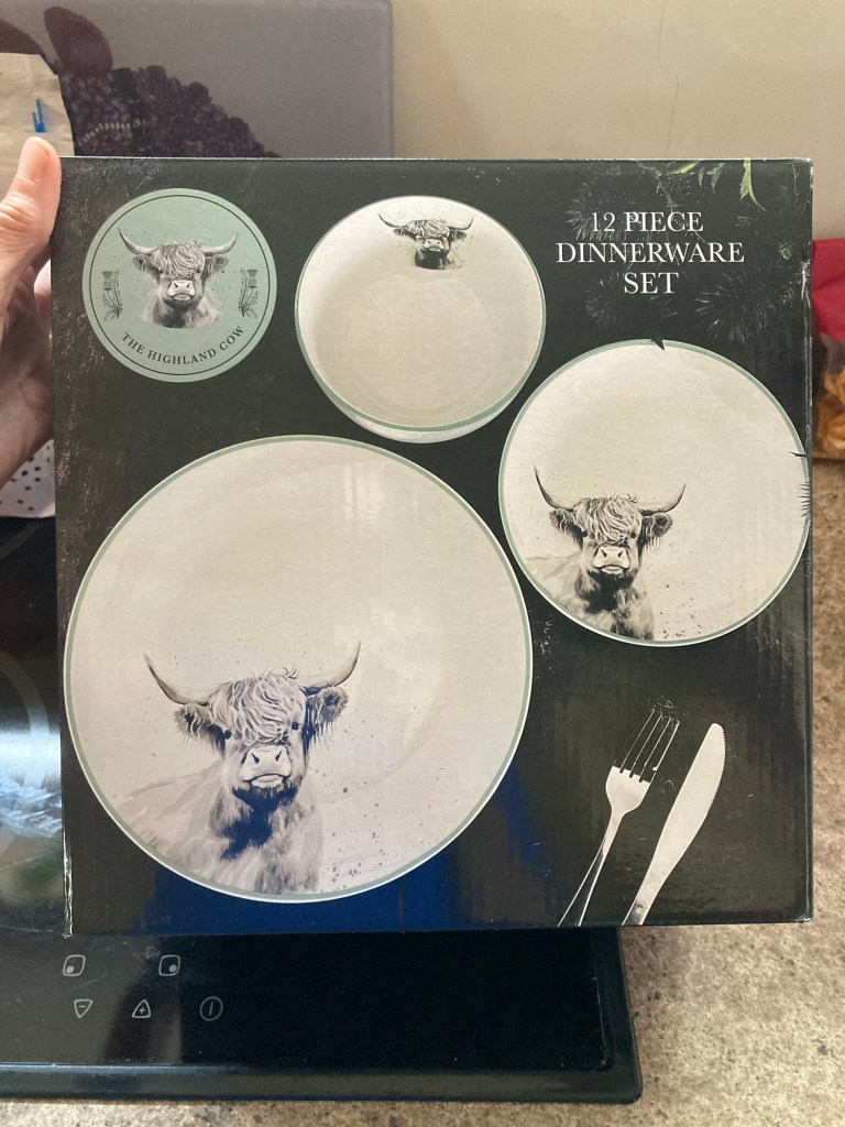 Anyway, I saw this set today and had to have it. I love Highland cows. Not that I’ve met one. I think it’s the fringe.
