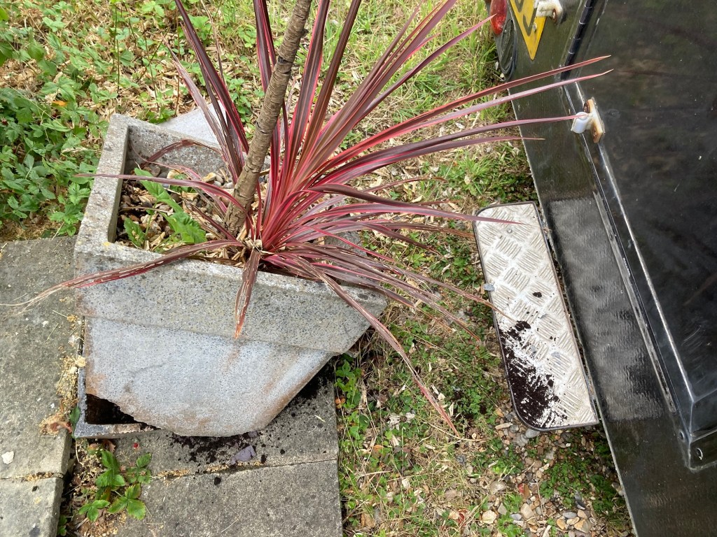 When I got back, I needed to move the Buddymobile over so I could get the Upgrade on my drive too. I only needed to move it over by about 2 foot. I managed to reverse it into a plant pot…