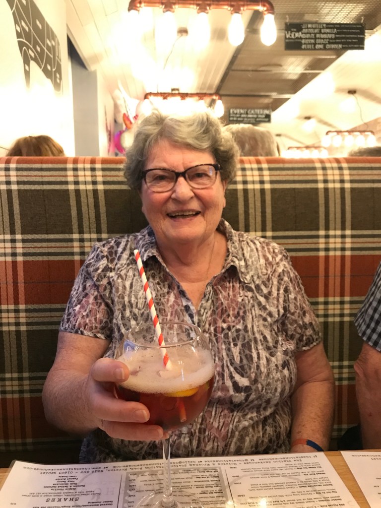 It feels very odd today. So I raised a glass to her. This was her in 2018 before the ravages of time, Covid and a million and one other ailments got her. I love this photo.