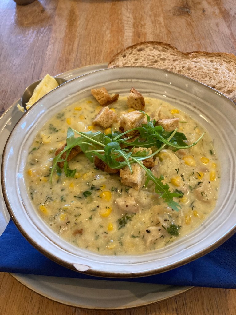This is exactly what I needed today on a rather soggy day. That and brilliant company as I met a friend for lunch. I love Chowder. It’s a very hearty soup. And we all know what a fan of soup I am!! OK, I’ll stop obsessing.