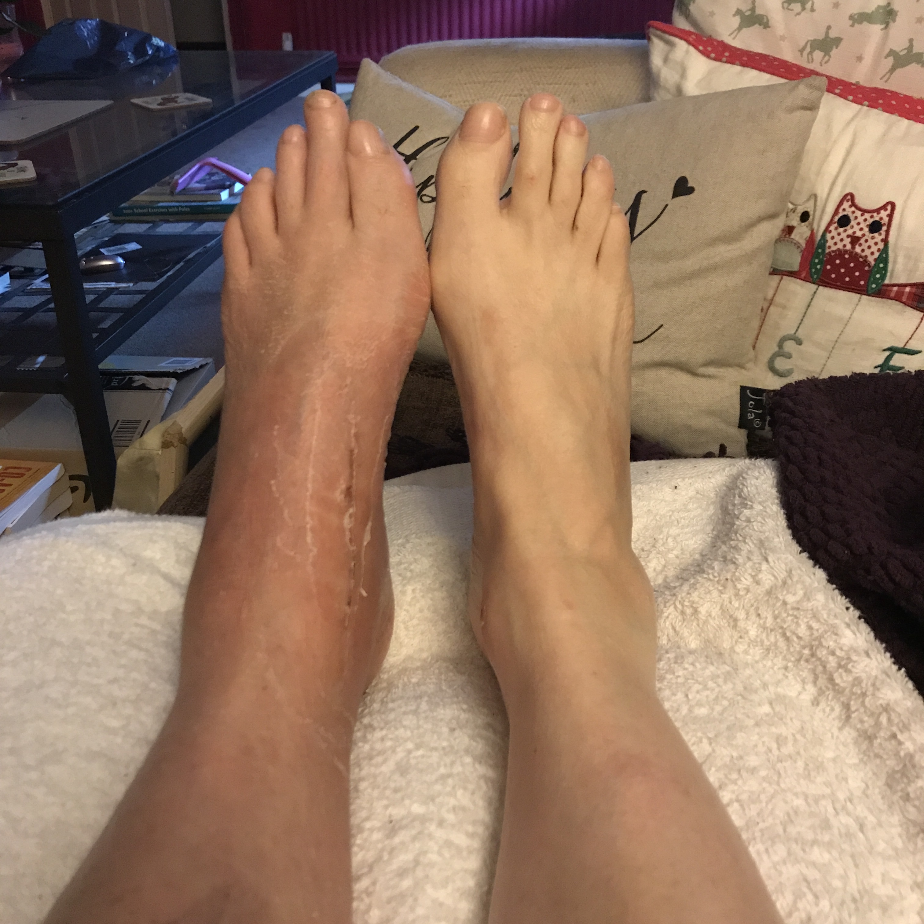 It feels very weird, very stiff but no pain – just lots of tingling as the nerves wake up. There’s some muscle wastage on my calf but the registrar was really pleased with it.