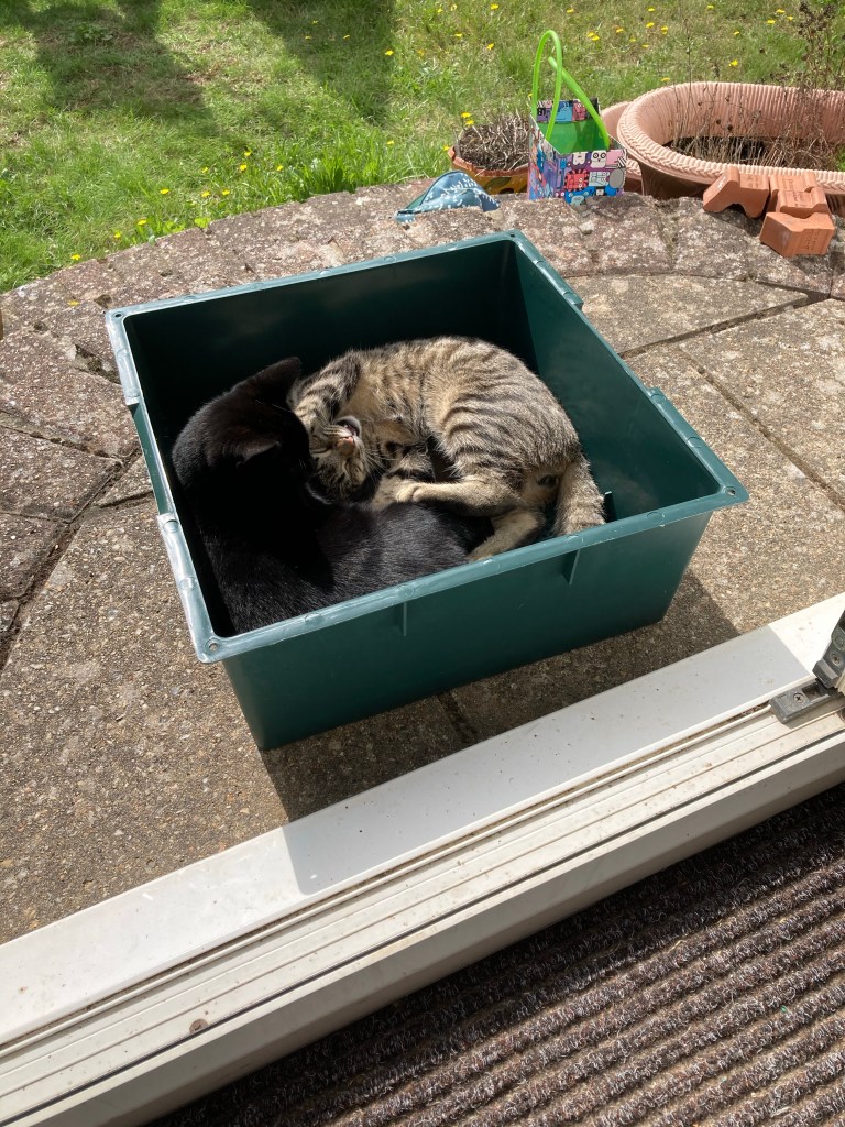 Hugo and Nero have been cuddled up most of the day. It makes you realise how brown Nero has gone in his old age.