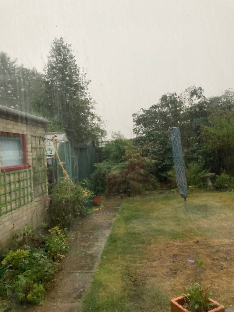 It’s bucketing it down! I can almost hear the plants drinking it in. Guess I won’t need to water tonight.