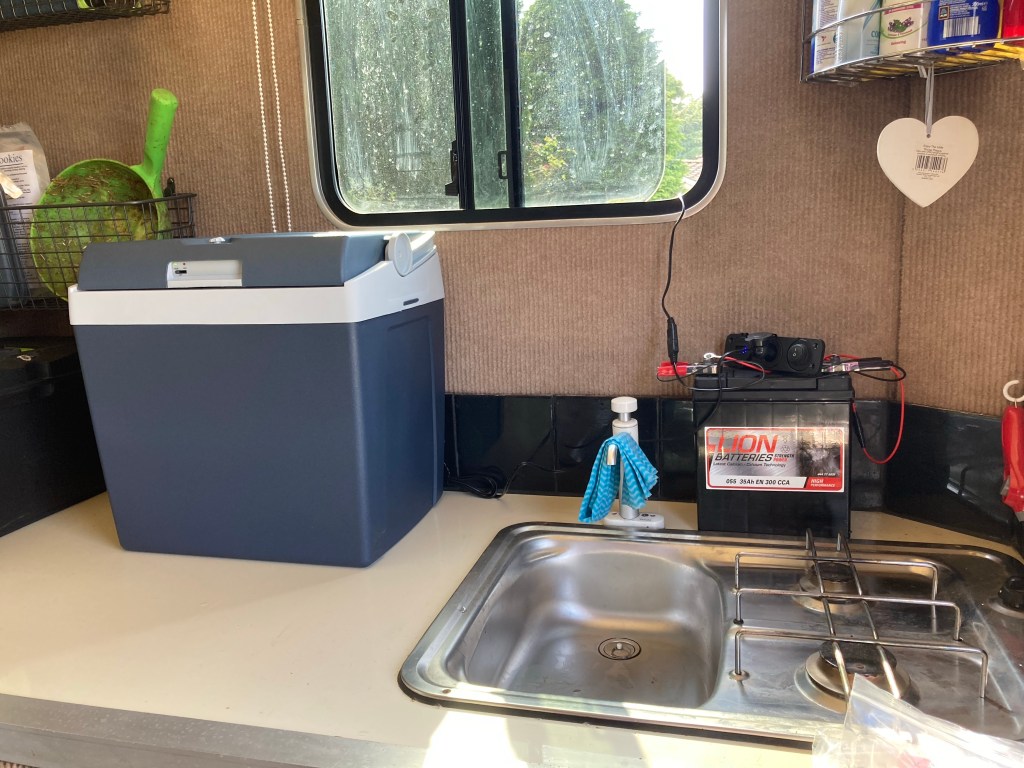 I’m off tomorrow for 3 days of lessons. This means 2 nights in my lorry. So this is the latest upgrade – an electric cool box hooked up to a leisure battery. My dad gave me the battery and a solar panel so I can charge it too. It’s not fancy, but it’ll work and means cold drinks and I can take some food with me.