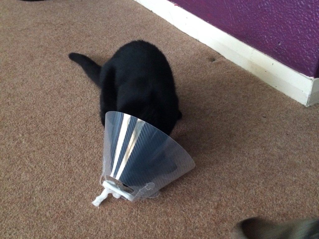 So it’s been an interesting couple of cat-related days. Hugo seems none the worse for his snip yesterday or his antics with the cone of shame. Hoping Dodo is the same next week after his. Glad I realised she was a he before we rocked up at the vets.