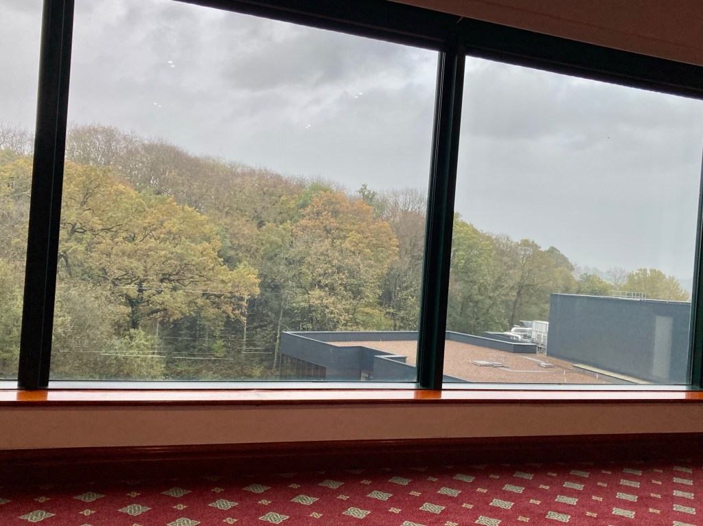 I was camped out in a conference room with a rather nice view. Unfortunately, it was obscured by the rain. Good job I didn’t get time to leave the building…