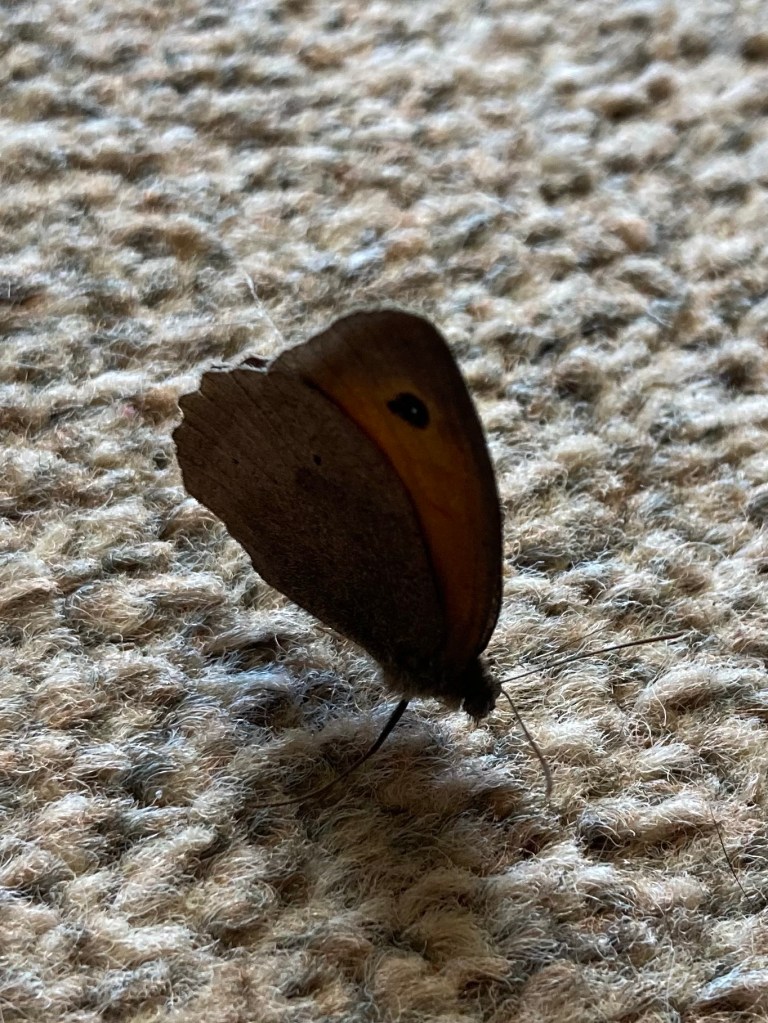 I had a visitor today while I was working. This little butterfly flew in and landed on the carpet next to me. After I took the photo, it flew up and landed on my trousers. So I walked out into the garden so it could fly off. And managed to keep Dodo (aka butterfly killer) away.