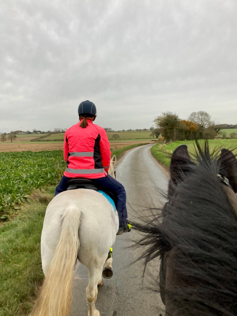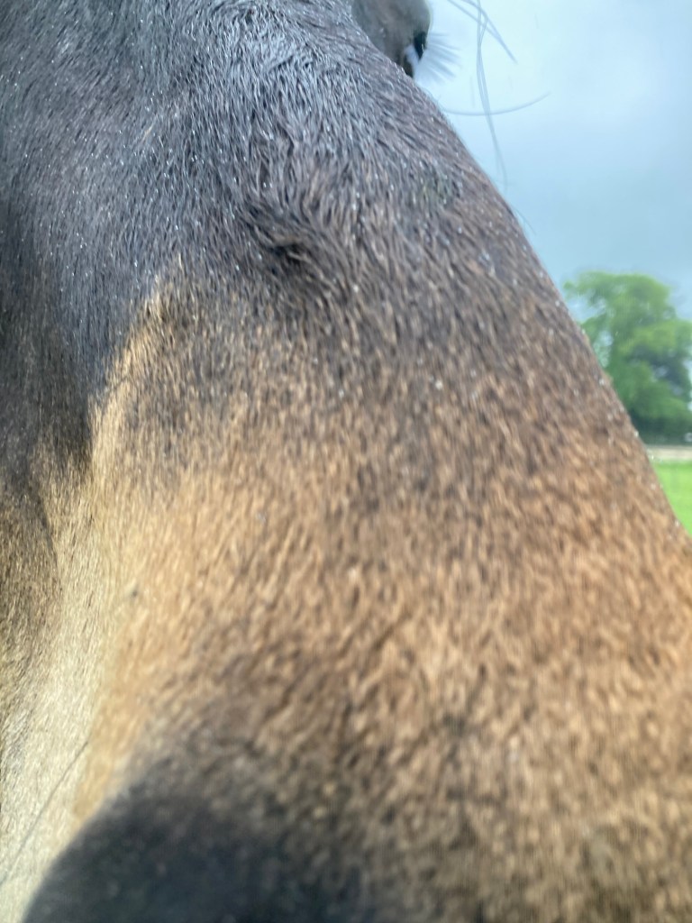 I was laughing to myself as the rain dropped off my hood. While most of me was dry, my legs weren’t. It didn’t help that I stopped to chat to another dog walker. Because as she said, we weren’t getting any drier. Good to know that dog walkers have the same sense of humour as horse riders.