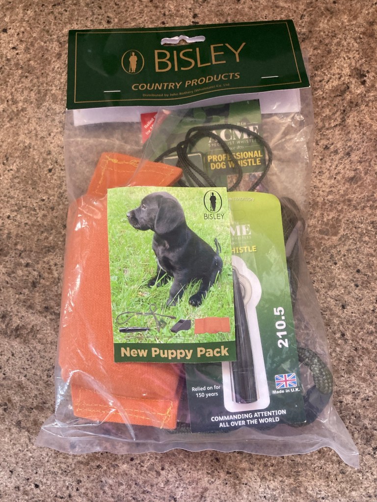 We had a go with the whistle. He was very interested in that. He loved fetching the dummy. Unfortunately, I left him unattended with it and he’s managed to rip a bit off. Maybe he’s not destined to be a gun dog…