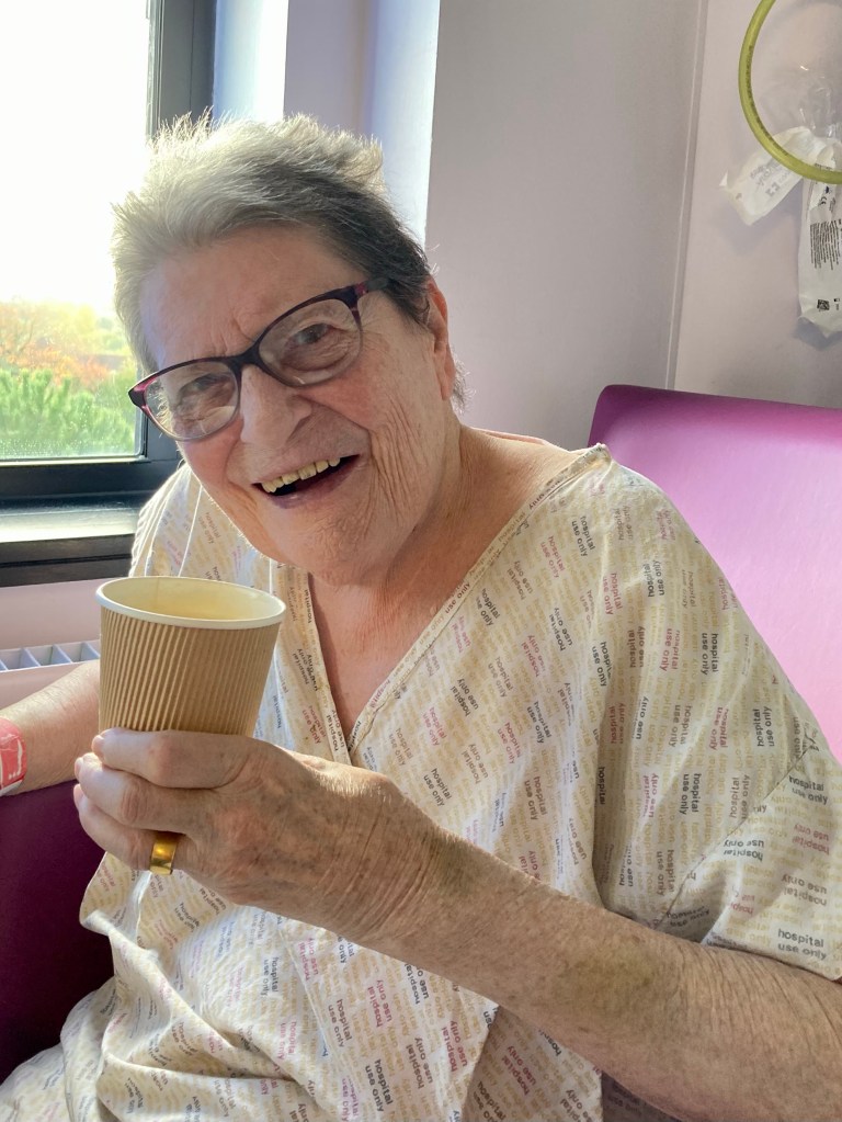 Anyone who knows my Mum will know her love of a frothy coffee. So today I took her one when I went to visit her. It put a smile on her face.