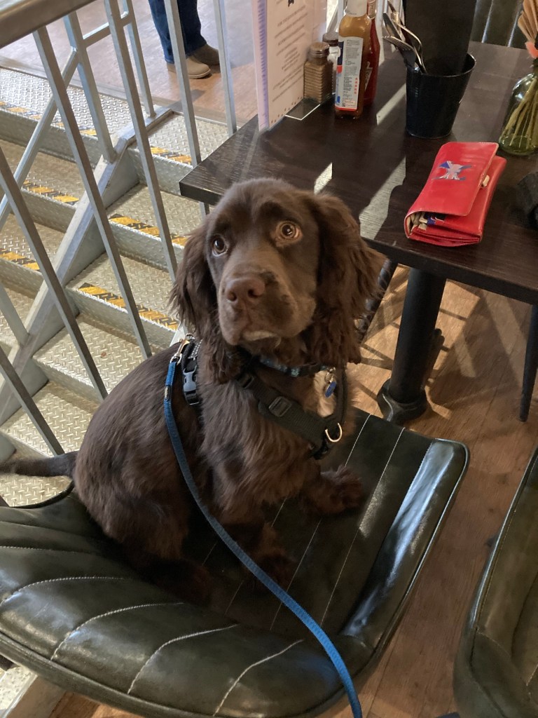I said he needed to be the poster boy for their Pre-School. Bert loves going to the vets, out for coffee and lunch. He such a social butterfly.