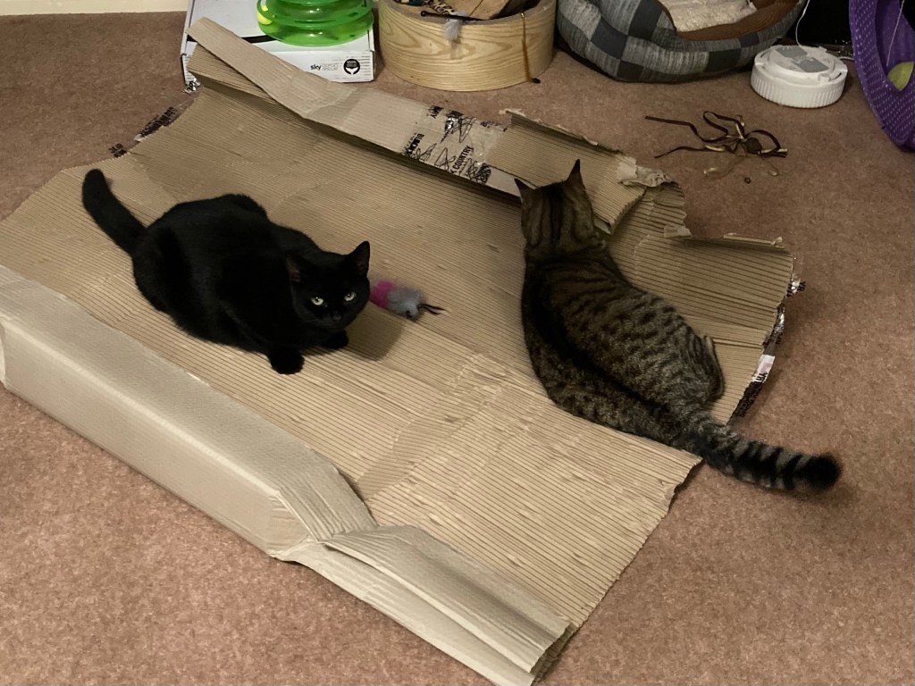 I did get some ‘presents’. Buddy gave me an exceptionally filthy stable to muck out. Bert brought me an old piece of rope on our walk. And the kittens left a trail of muddy paw prints all over my bed. Who says romance is dead?!