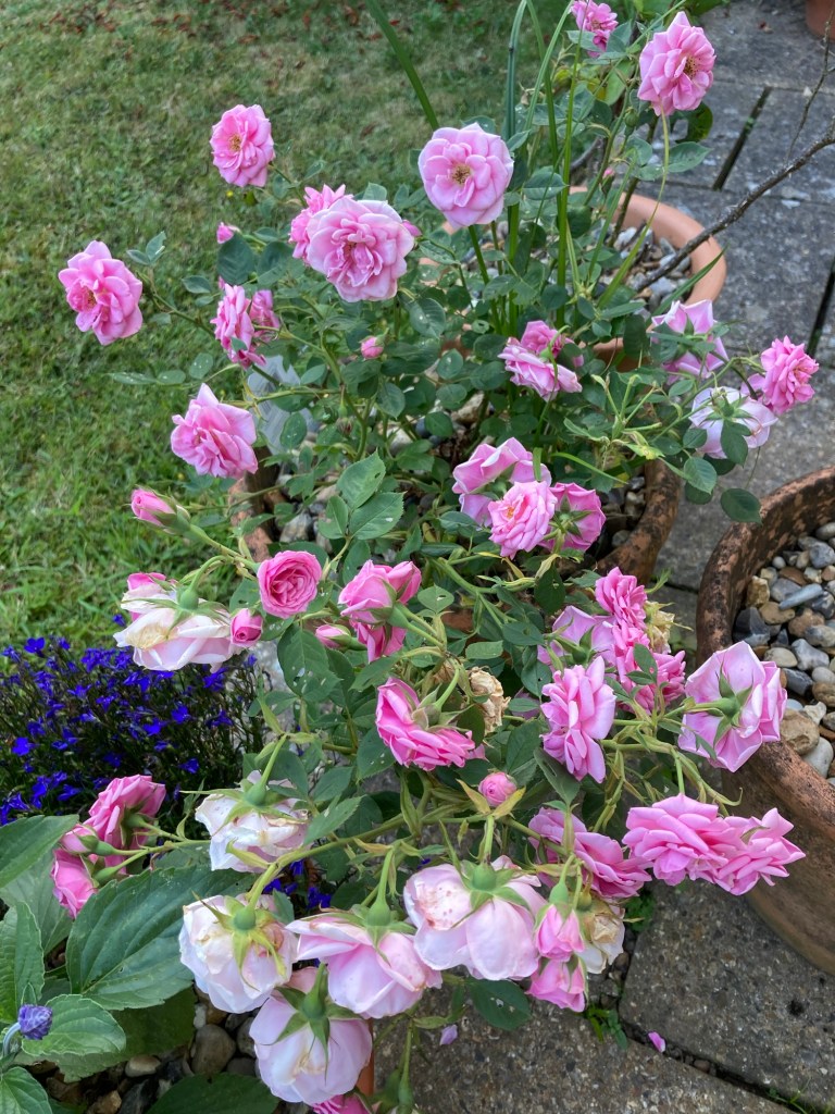 I bought this patio rose about a month ago. It’s exploded with blooms overnight. It smells divine too. I sat on the patio for my breakfast and lunch sniffing it.