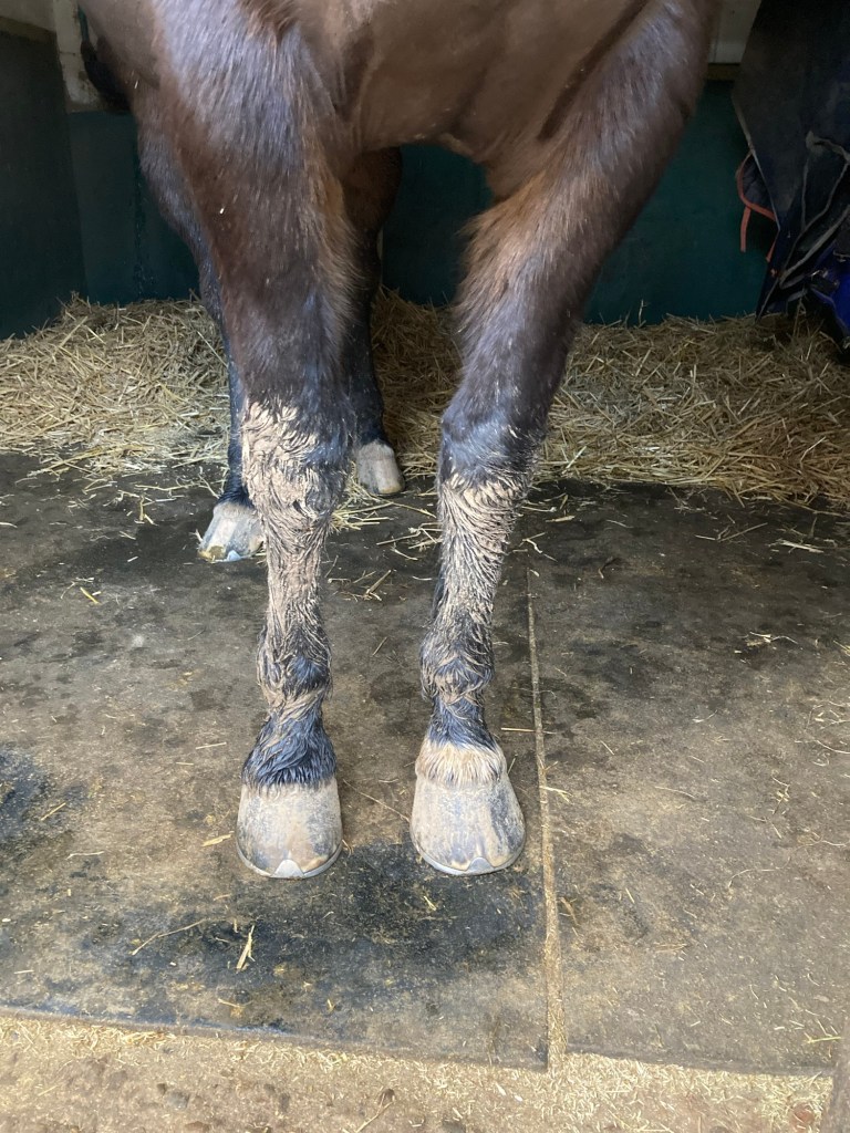 Buddy was a model patient. He took it all in his stride. Given he’s had nearly 3 weeks off work, I wasn’t sure what to expect when they lunged him. He was as good as gold. Even in the torrential rain.