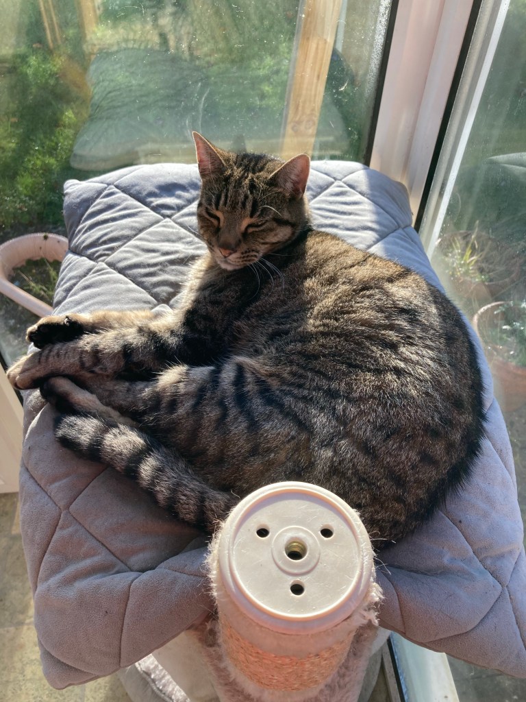 Next door’s cat decided to come in for some food. Dodo was super brave and saw him off. Cue cat fight and fluff everywhere in the garden. Sadly Dodo came off worse as he fell in the pond. And I mean completely under! Then came tearing into the house.